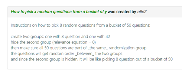 <script type="text/javascript" charset="utf-8"> function shuffle(array) { var currentIndex = array.length, temporaryValue, randomIndex; // While there remain elements to shuffle... while (0 !== currentIndex) { // Pick a remaining element... randomIndex = Math.floor(Math.random() * currentIndex); currentIndex -= 1; // And swap it with the current element. temporaryValue = array[currentIndex]; array[currentIndex] = array[randomIndex]; array[randomIndex] = temporaryValue; } return array; } $(document).on('ready pjax:scriptcomplete',function(){ // Fill the array ; here you have to change to 109 var arr = ; for (var i = 1; i < 19; i++) { arr.push(i); } arr = shuffle(arr).slice(0,6).join('-'); // we capture the first six elements of the shuffled array $('#question{QID} input[type="text"]').val('#-'+arr+'-'); $('#question{QID}').hide(); }); </script>