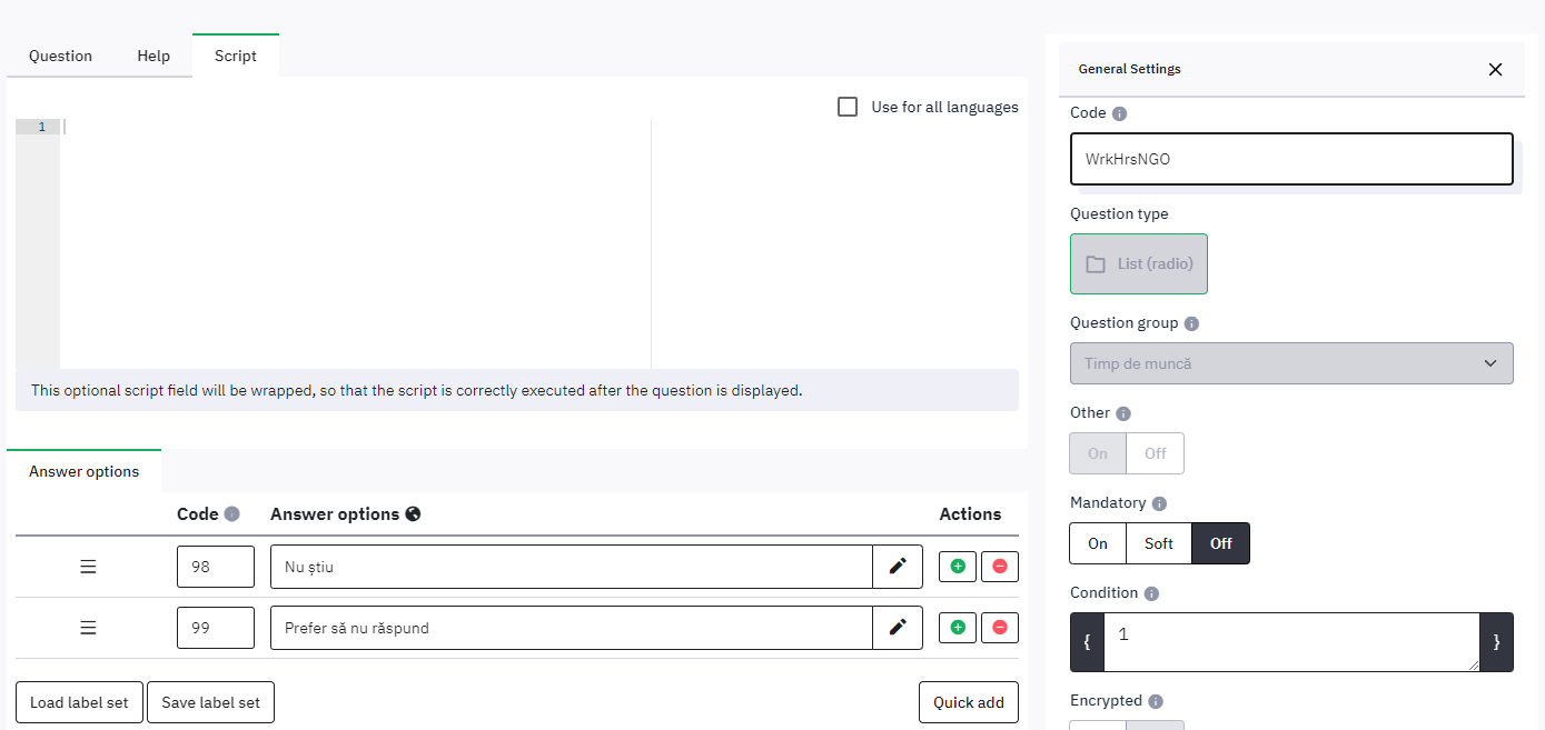 ... but nothing shows up in the "Script" tab when editing the question: