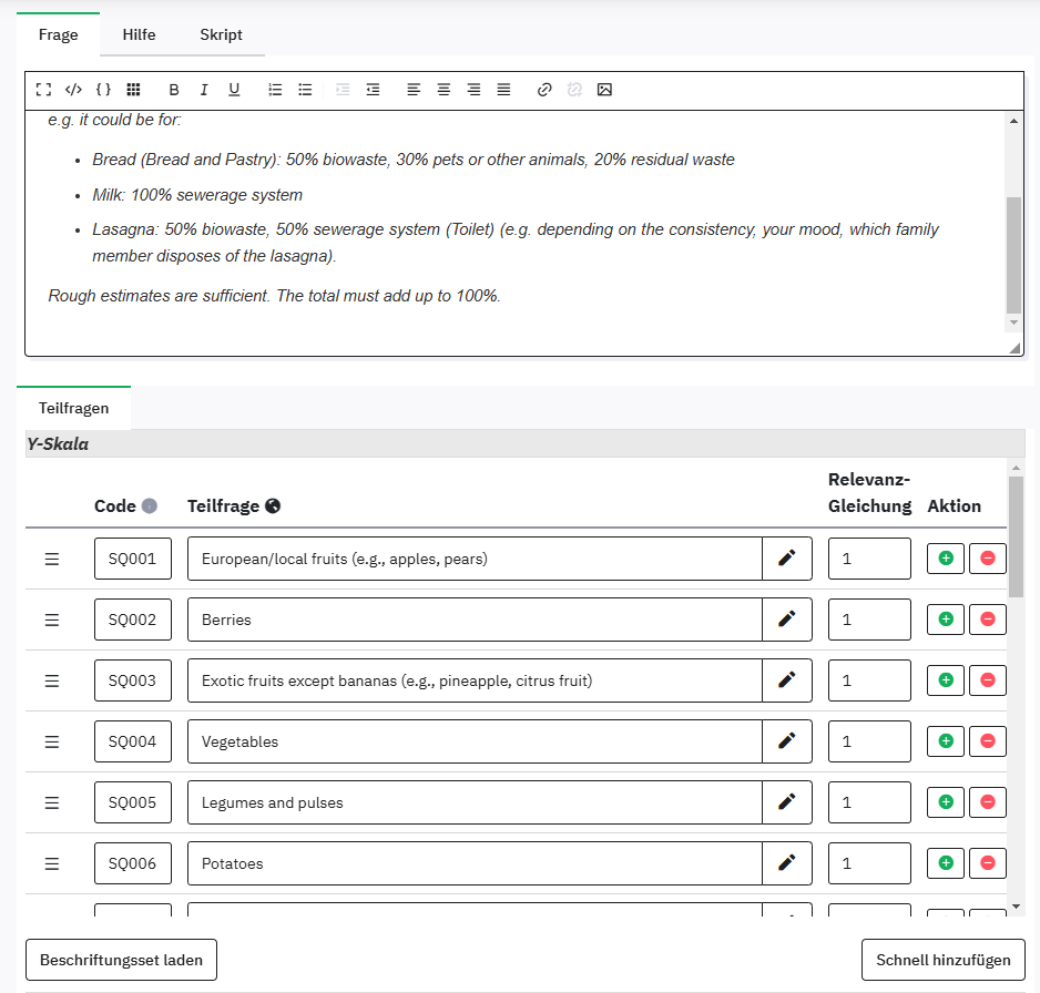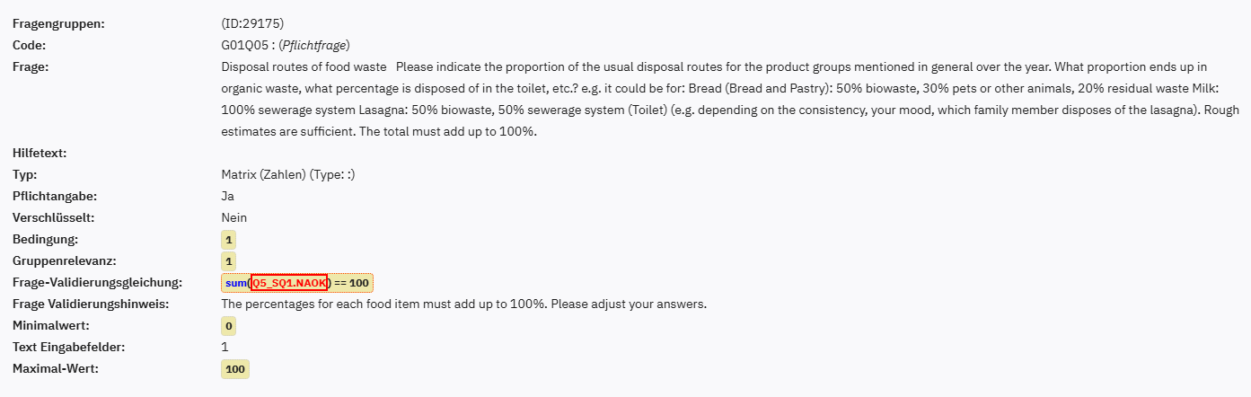 This is the code for the conditions I used: sum(G14Q52_SQ001_SQ001.NAOK, G14Q52_SQ001_SQ002.NAOK, G14Q52_SQ001_SQ003.NAOK, G14Q52_SQ001_SQ004.NAOK, G14Q52_SQ001_SQ005.NAOK, G14Q52_SQ001_SQ006.NAOK) == 100 AND sum(G14Q52_SQ002_SQ001.NAOK, G14Q52_SQ002_SQ002.NAOK, G14Q52_SQ002_SQ003.NAOK, G14Q52_SQ002_SQ004.NAOK, G14Q52_SQ002_SQ005.NAOK, G14Q52_SQ002_SQ006.NAOK) == 100 AND sum(G14Q52_SQ003_SQ001.NAOK, G14Q52_SQ003_SQ002.NAOK, G14Q52_SQ003_SQ003.NAOK, G14Q52_SQ003_SQ004.NAOK, G14Q52_SQ003_SQ005.NAOK, G14Q52_SQ003_SQ006.NAOK) == 100 AND sum(G14Q52_SQ004_SQ001.NAOK, G14Q52_SQ004_SQ002.NAOK, G14Q52_SQ004_SQ003.NAOK, G14Q52_SQ004_SQ004.NAOK, G14Q52_SQ004_SQ005.NAOK, G14Q52_SQ004_SQ006.NAOK) == 100 AND sum(G14Q52_SQ005_SQ001.NAOK, G14Q52_SQ005_SQ002.NAOK, G14Q52_SQ005_SQ003.NAOK, G14Q52_SQ005_SQ004.NAOK, G14Q52_SQ005_SQ005.NAOK, G14Q52_SQ005_SQ006.NAOK) == 100 AND sum(G14Q52_SQ006_SQ001.NAOK, G14Q52_SQ006_SQ002.NAOK, G14Q52_SQ006_SQ003.NAOK, G14Q52_SQ006_SQ004.NAOK, G14Q52_SQ006_SQ005.NAOK, G14Q52_SQ006_SQ006.NAOK) == 100 AND sum(G14Q52_SQ007_SQ001.NAOK, G14Q52_SQ007_SQ002.NAOK, G14Q52_SQ007_SQ003.NAOK, G14Q52_SQ007_SQ004.NAOK, G14Q52_SQ007_SQ005.NAOK, G14Q52_SQ007_SQ006.NAOK) == 100 AND ... and so on