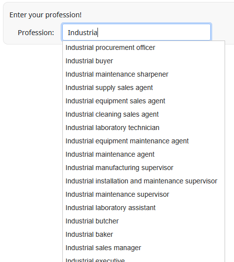 And I wonder why you didn't use the - more or less - standard in LimeSurvey to insert an "autocomplete"