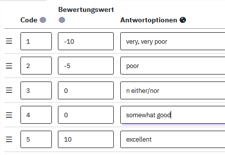 This might be useful, if you want to have negative weights or if two or more items in one question have the same weight