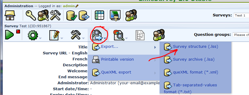 ...Only you might have to tell me how to do that.... or perhaps I cannot do it... I was invited to be a "co-adnministrator" of this survey, so I just log in and start designing, etc. I am not sure where the survey files (templates, etc) are actually held (I can see the template and (presumably) can edit it.