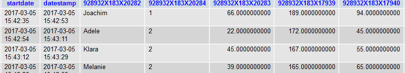 All answers, columns in SQGA with added subquestion codes in arrays.