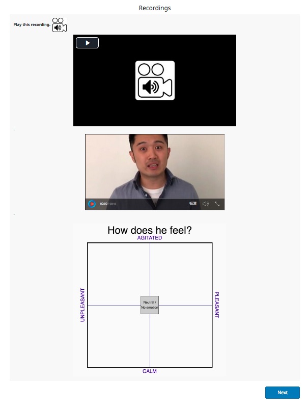 The survey consists, among other things, of 12 question groups that are almost identical (with only the displayed recordings in each question group being different).