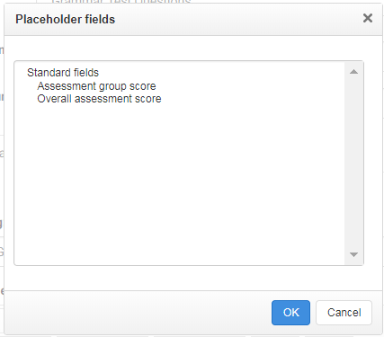 In relation to the attached screen shots attached, it would be great if you could if the Placeholder fields that you under Settings/Assessment/Create new assessment tool