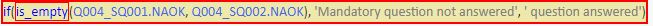 {% if aQuestion.mandatory != '' %} {{ processString("{if(count(self.NAOK)>0,'<span>Mandatory question answered</span>',' <span>question not answered</span>')}") }} <div class="{{ aSurveyInfo.class.questionasterix }} pull-left" {{ aSurveyInfo.attr.questionasterix }} > <small style="margin-right: 3px; font-size: 65%;" class="{{ aSurveyInfo.class.questionasterixsmall }} text-danger fa fa-asterisk small" {{ aSurveyInfo.attr.questionasterixsmall }}></small> <span class="{{ aSurveyInfo.class.questionasterixspan }} sr-only text-danger" {{ aSurveyInfo.attr.questionasterixspan }} > {{ gT("(This question is mandatory)") }} </span> </div> {% endif %}