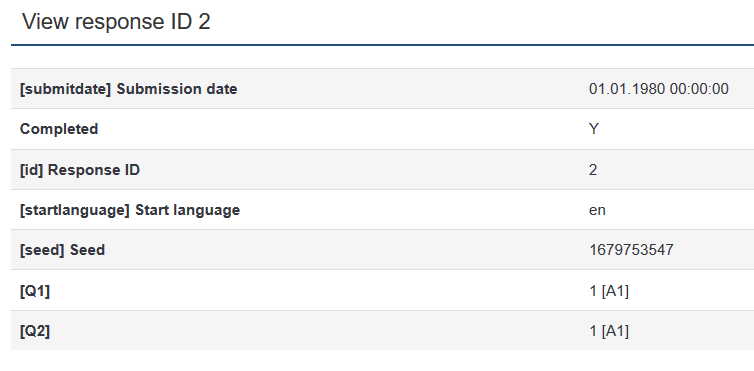 4. Add an answer option A1 with text "1" to both Q1 and Q2, respectively.
