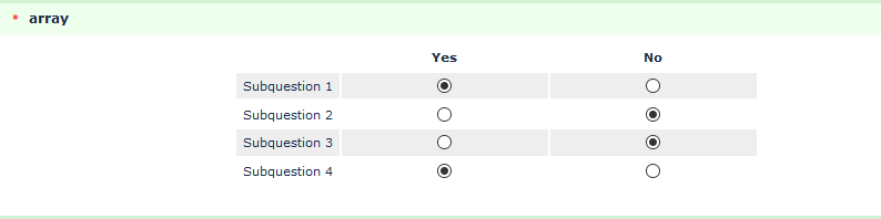But to be able to do this, insert a question of type "multiple" (hidden), where you set the relevant items (the ones which got a "Yes" in the array) by an equation (also hidden).