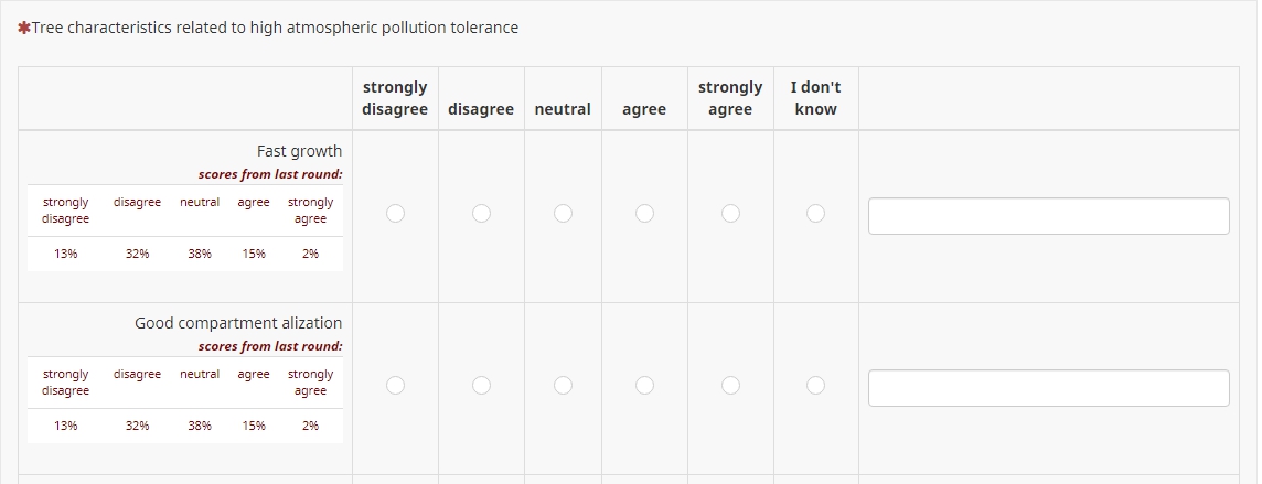 <style type="text/css">.custom-array table.subquestion-list col { width: auto !important; } .custom-array table.subquestion-list thead .column-0 { width: 28%; } .custom-array table.subquestion-list thead .column-1 { width: 7%; } .custom-array table.subquestion-list thead .column-2 { width: 7%; } .custom-array table.subquestion-list thead .column-3 { width: 7%; } .custom-array table.subquestion-list thead .column-4 { width: 7%; } .custom-array table.subquestion-list thead .column-5 { width: 7%; } .custom-array table.subquestion-list thead .column-6 { width: 7%; } .custom-array table.subquestion-list thead .column-7 { width: 30%; } </style>