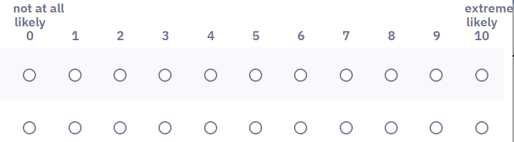span style="white-space:nowrap;">extremely<br/>likely</span><br/>0