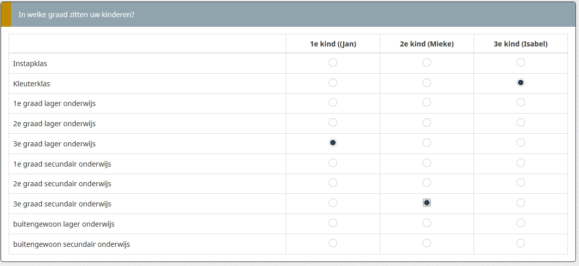 U kunt de namen stellen, in deze of andere vragen gebruiken en ze vervolgens verwijderen.Namen kunnen we niet vragen, want de enquête zou anoniem moeten worden ingevuld