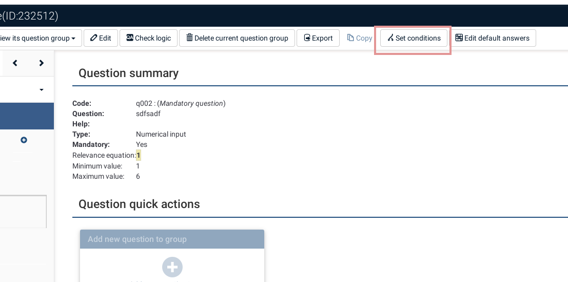 Probleme Équation du filtre conditionnel avec Limesurvey 2.0