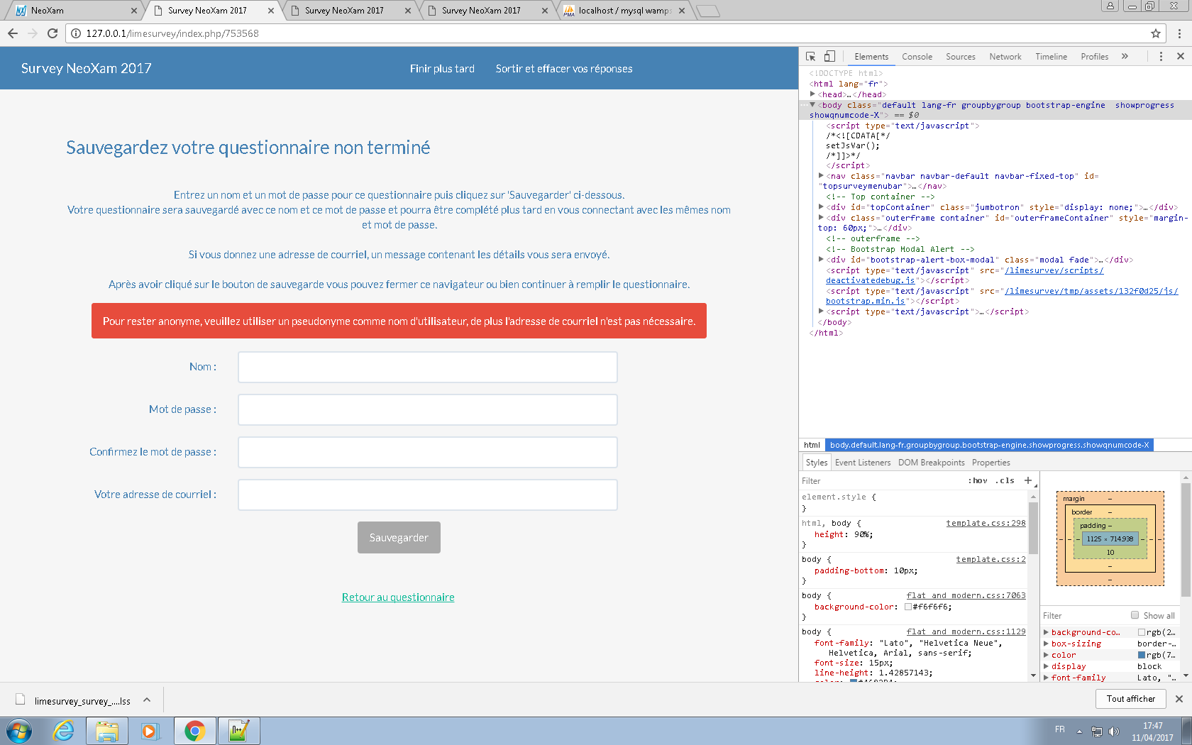 j'ai pas besoin de champs d'email parceque le questionnaire est anonyme