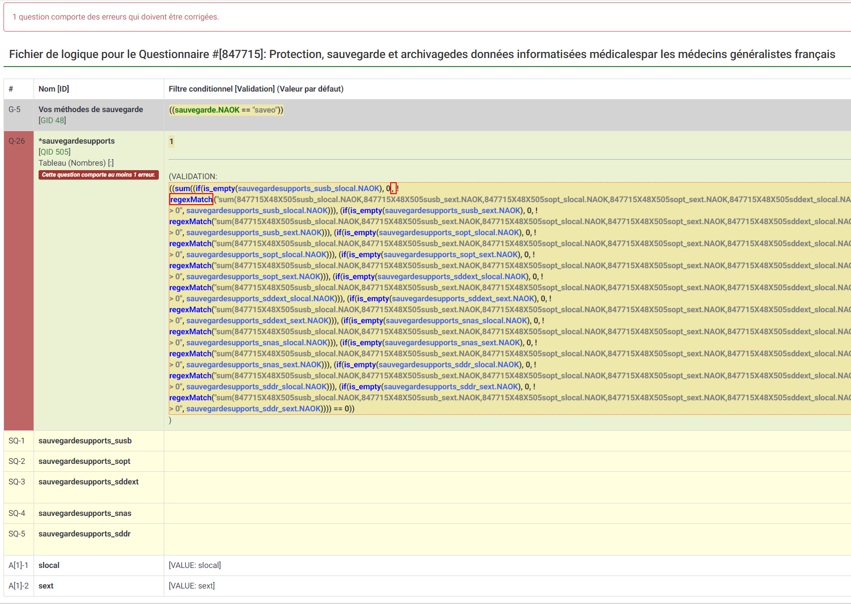 pour voir si le simple fait de répondre 3 à la première case permettait de passer au groupe suivant : toujours impossible de passer à la suite !sauvegardesupports_susb_slocal == 3