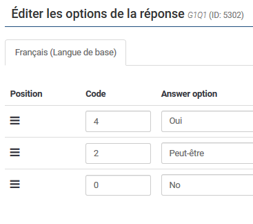 Je suis en train de créer un questionnaire où chaque réponse (oui /peut-être / non) doit être convertie en valeur numérique (oui = 4, peut-etre = 2, non = 0) et calculé pour obtenir un score final sur 100.