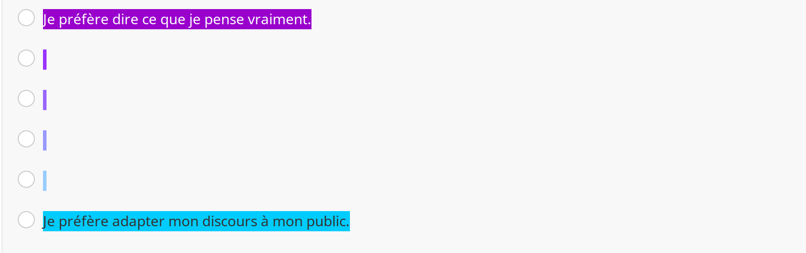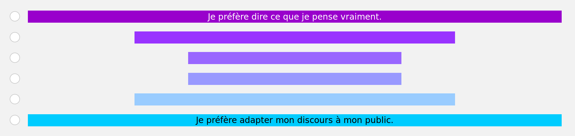 <td style="text-align: center;"><span style="color:#FFFFFF;">Je préfère dire ce que je pense vraiment.</span></td>