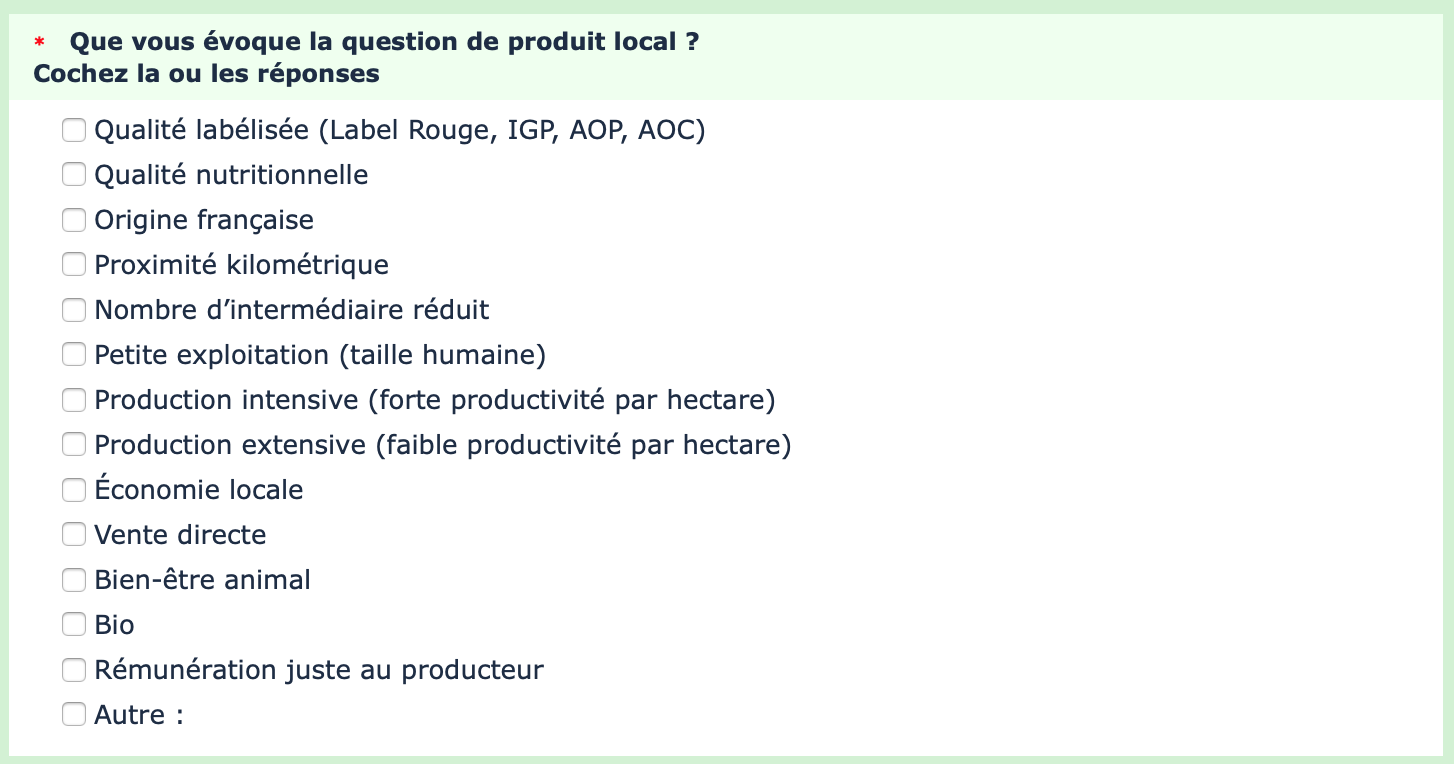 J'ai une première question à choix multiple pour laquelle je demande de choisir des critères. (première image)