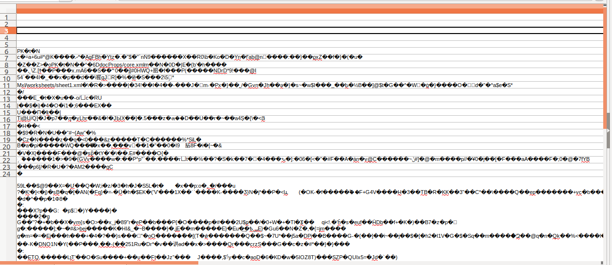 Je vois le PK indiquant un fichier compressé zip ce qui est le cas d'un xlsx, mais les ligne du début sont anormales …