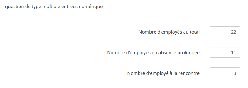 J'ai une question de type multiple entrées numérique avec les catégories: