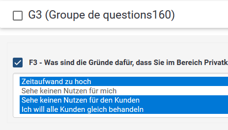 Voilà comment s'affiche la suite de questions concernée, avec les sous-questions sélectionnées en gris :