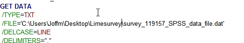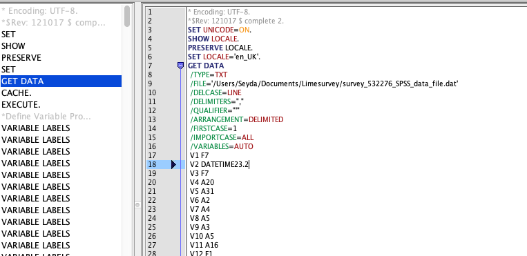 Au débutDans le fichier de syntaxe SPSS, les étiquettes des variables s'affichent comme ce qui suit: V1, V2, V3, etc.