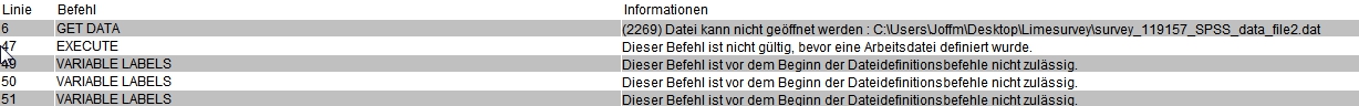 - Commande VARIABLE LABELS: Cette commande n'est pas autorisée avant le début de commandes de définition de fichier.