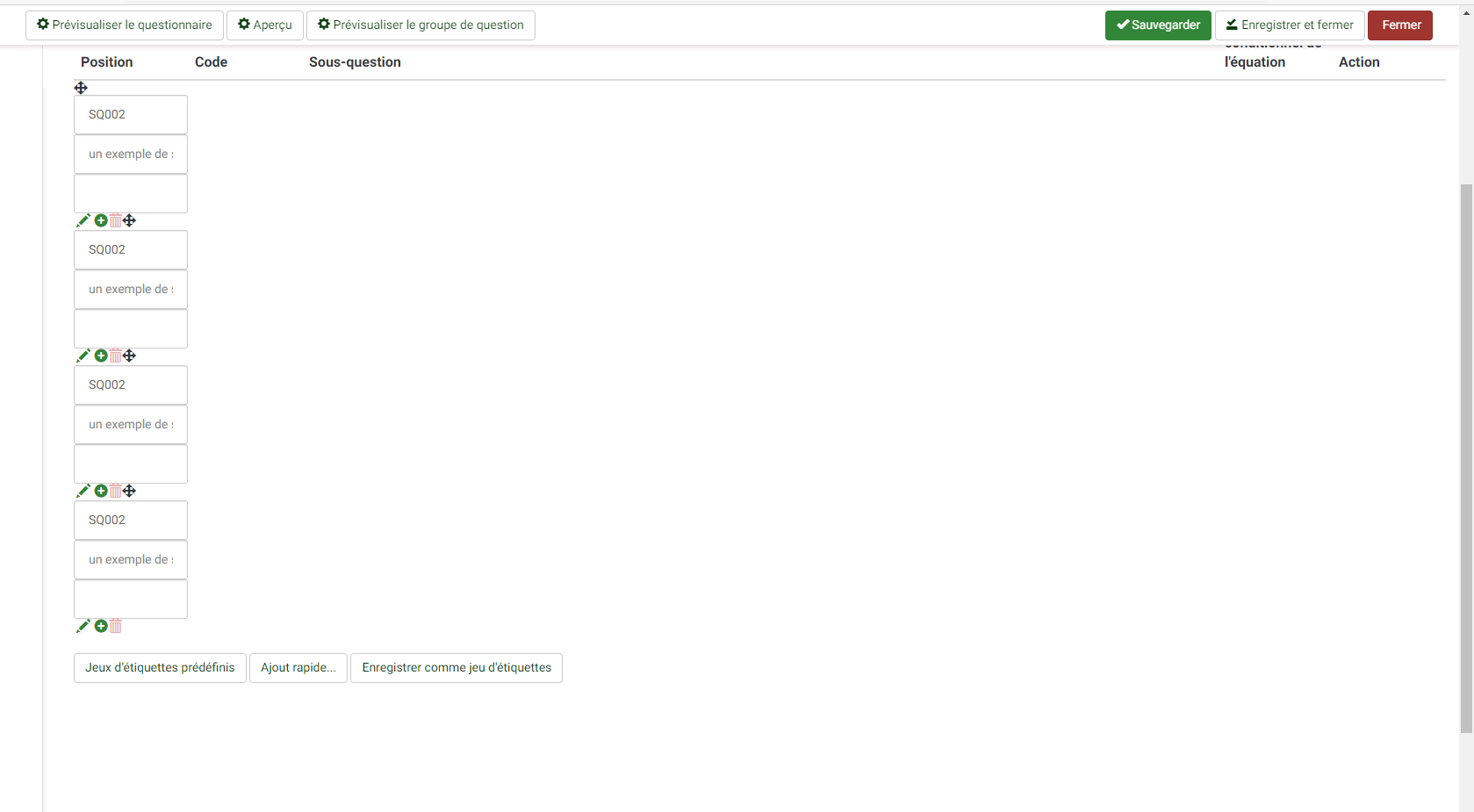 Je débute sur Lime Survey. Je souhaite un questionnaire simple. J'ai réussi à créer différentes questions, mais je n'arrive pas à y ajouter les réponses ...