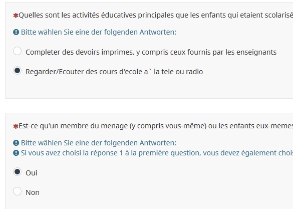 Coherence: si la personne repond a la modalite 1 de la question Q1 il doit obligatoirement choisir la modalite 1 de la Q2