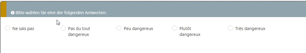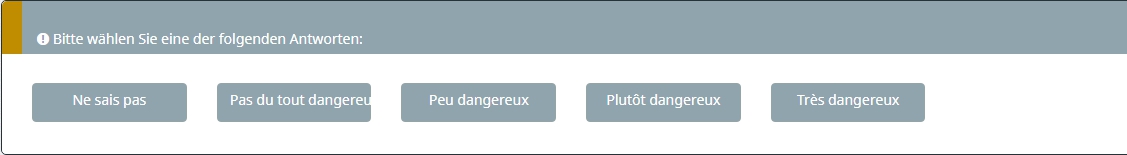 Ne sais pas Pas du tout dangereux Peu dangereux Plutôt dangereux Très dangereux
