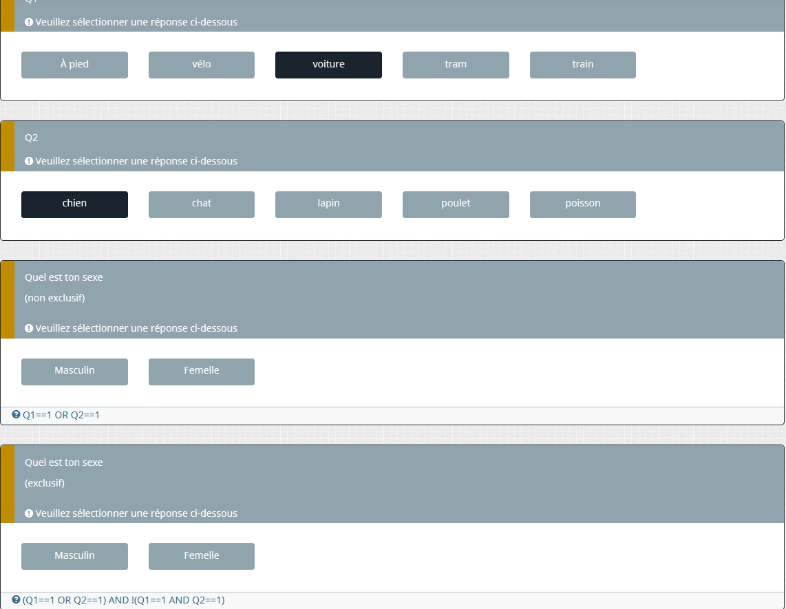 Je rencontre un autre problème : les conditions portent sur des sous-questions. Apparemment, je n'utilise pas les bons codes de sous-questions.