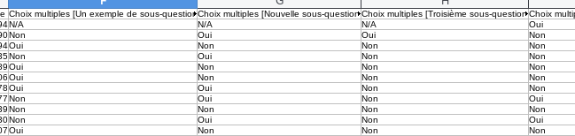 Le problème est qu'à l'export au format EXCEL, dans la colonne de ces questions à choix multiples je n'ai pas la liste des choix faits mais simplement un OUI