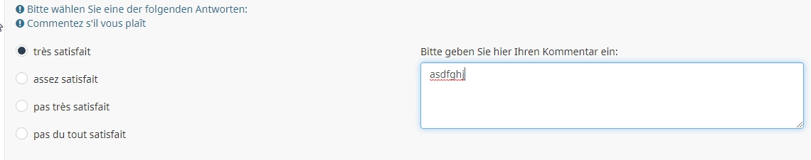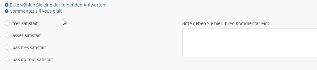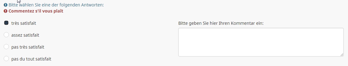J'aimerais que les répondants soient obligés d'écrire quelque chose dans le commentaire s'ils ont répondu peu ou pas satisfaits, mais que le commentaire soit optionnel pour ceux qui sont très ou assez satisfaits. Est-ce possible? Si oui, comment?