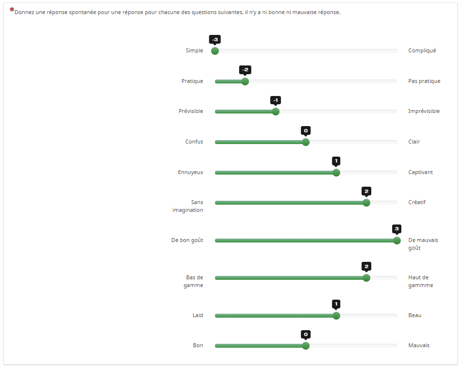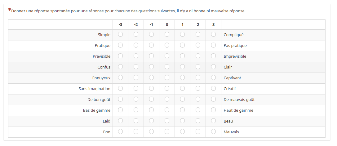 Je fais souvent des AttrakDiff, je n'ai jamais rencontré de soucis pour mettre les chiffres.