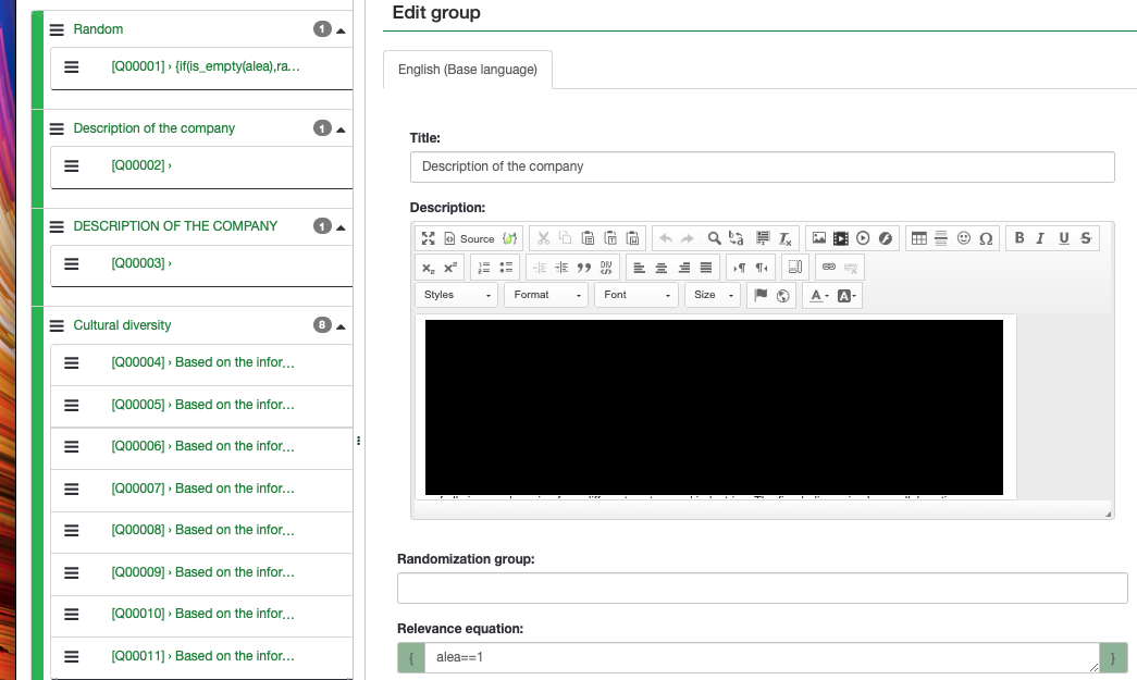 Dans le cadre de mon mémoire, je dois créer un questionnaire sur Limesurvey 2.5. Je suis novice et je galère un peu. Du coup, j'ai quelques petites questions