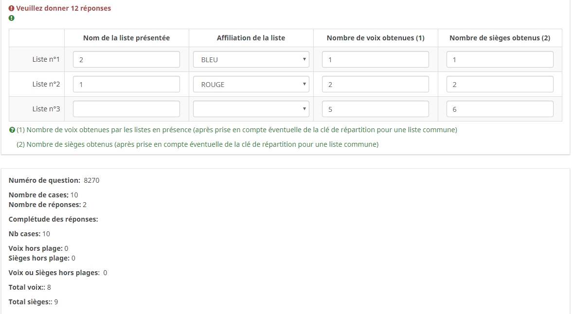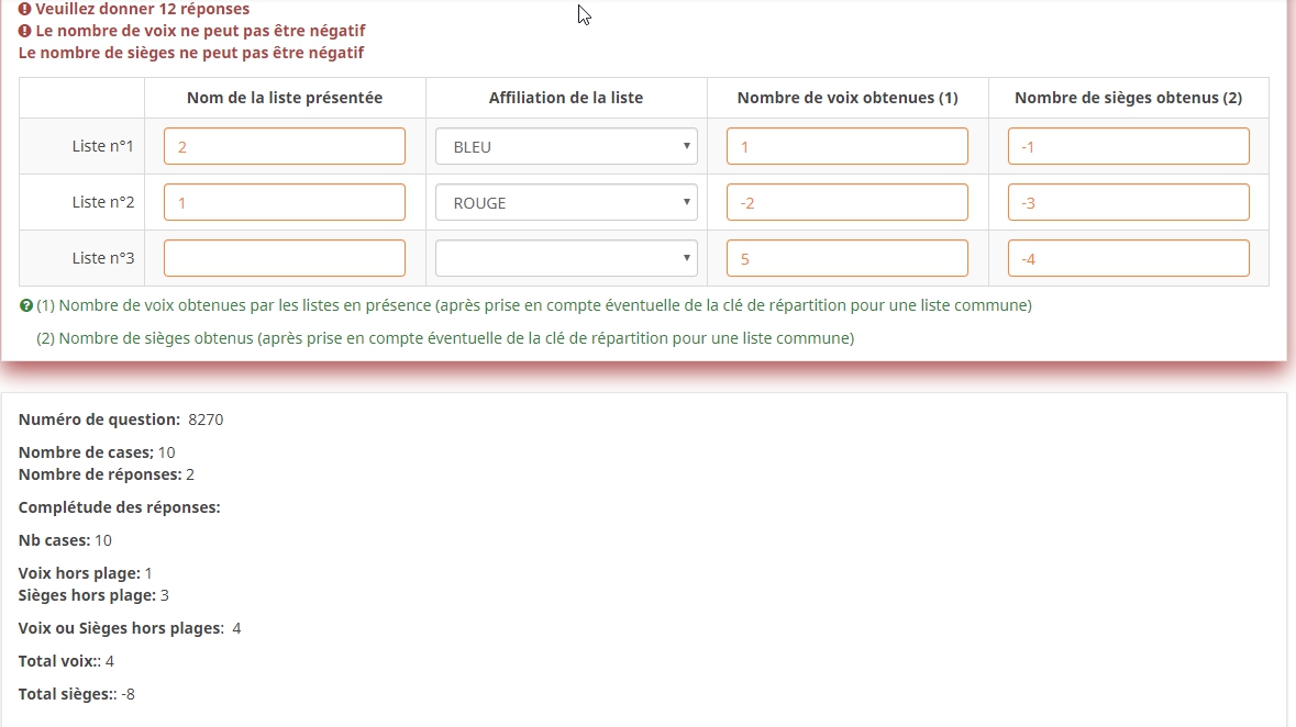 Validation du questionnaire : pop up de valeur non correcte.