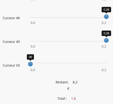 j'ai des curseurs avec chacun qui varie entre 0 et 0,2. En définissant ces intervalles, mes curseurs ne veulent plus glisser et restent bloquer sur le 0€.