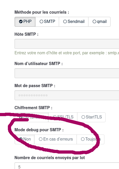 J'ai remarqué que lorsque que je configure le serveur SMTP et sauvegarde les données, le mot de passe change automatiquement.