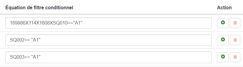 Alors c'est juste Q1_SQ001 == "A1" comme équation de pertinence de la première sous-question de la deuxième matrice Q1_SQ002 == "A1" comme équation de pertinence de la deuxième sous-question de la deuxième matrice