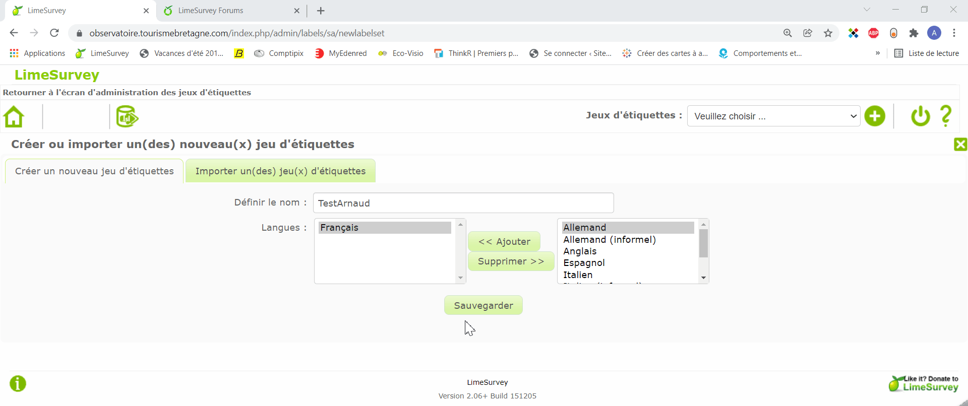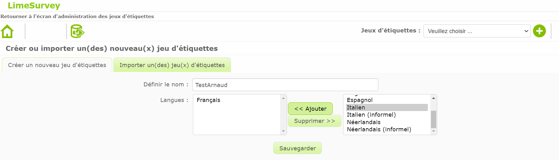 Sinon : les langues des jeux d'étiquettes viennent des paramètres généraux : www.limesurvey.org/manual/Global_settings#Language