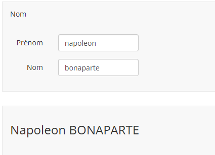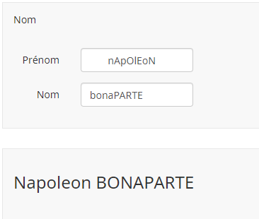 Je souhaite ici afficher le prénom sous la forme David (1ère lettre en majuscule uniquement) et le nom entièrement en majuscule (MARTIN).