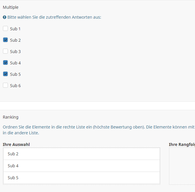 Pour l'instant la question "classement" récupère les réponses données à chaque sous-question du tableau précédent (mais ce n'est pas le but recherché).