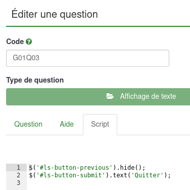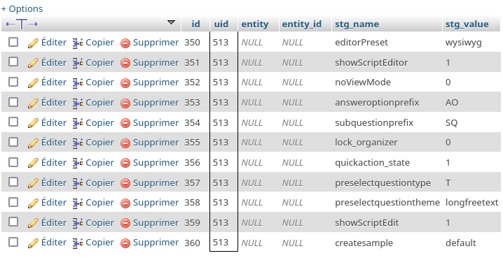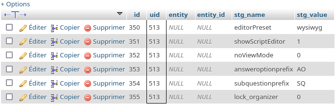mon login > Mon compte > Mes paramètres personnels > Enregistrer et fermer (tb lime_settings_user) : on remarque l'ajout de "ShowScriptEdit"