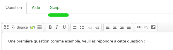 En allant en haut à droite sur mon login > Mon compte > Mes paramètres personnels, on trouve bien l'option "Afficher le champ de script:" positionné sur "Oui" mais il n'est pas pris en compte dans les onglets d'édition de question.
