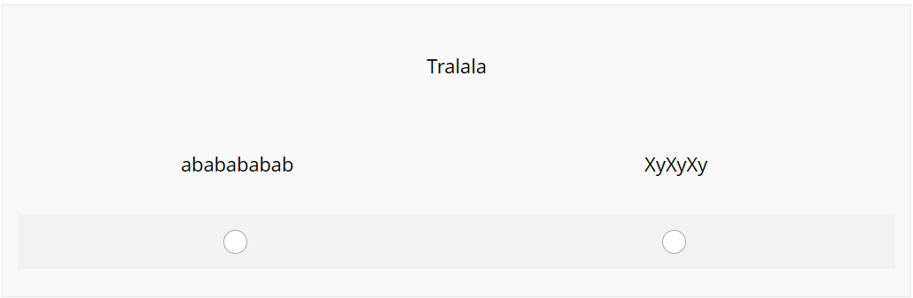 - Deux propositions de mots (parmi lesquels le participant doit en choisir un) disposés sur la même ligne en dessous du mot référent, et situés chacun à la même distance de ce dernier.
