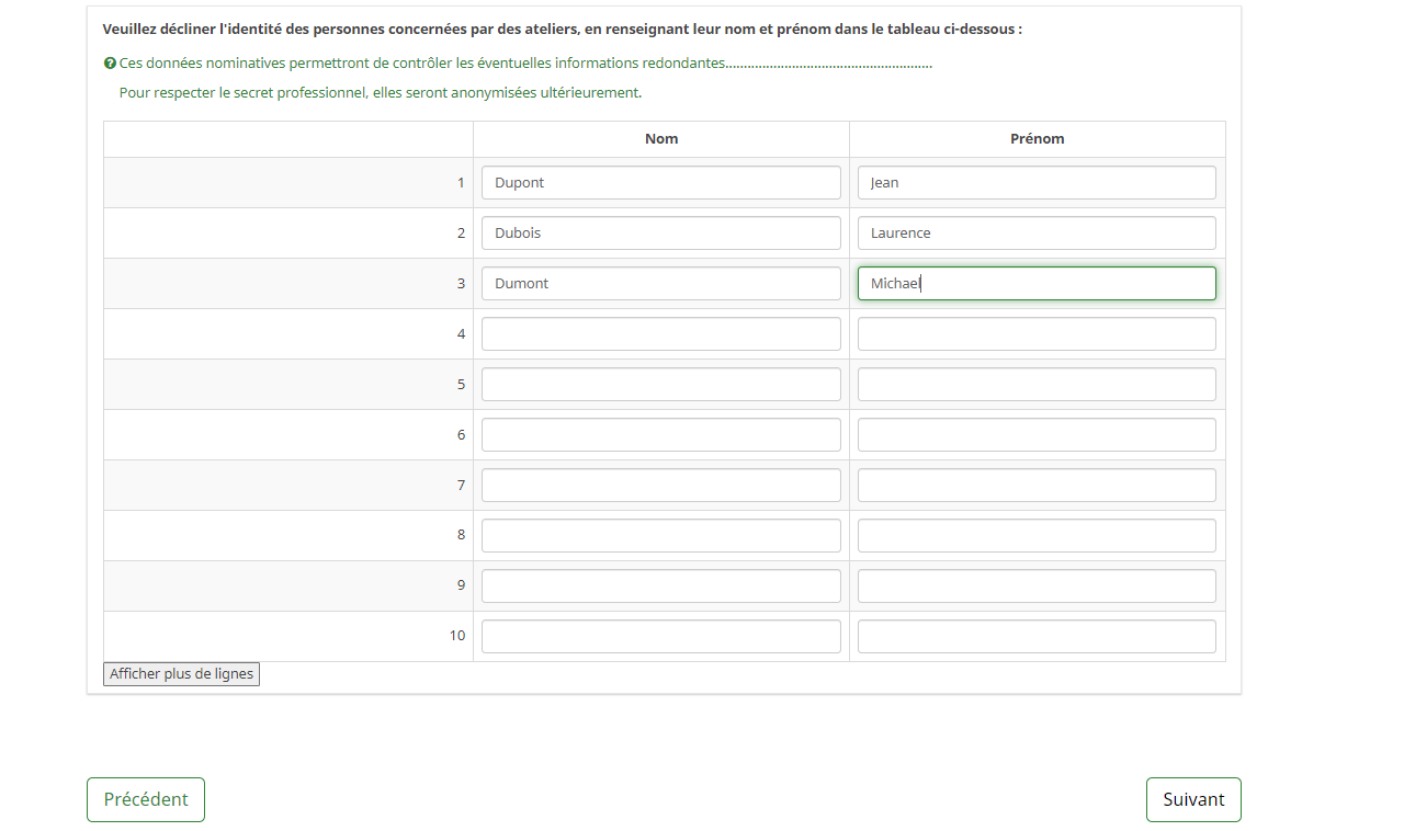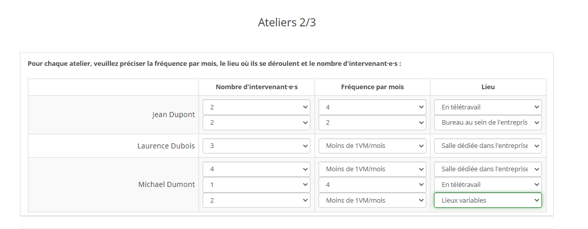 - En Q1, les répondants doivent citer les personnes inscrites dans des ateliers.