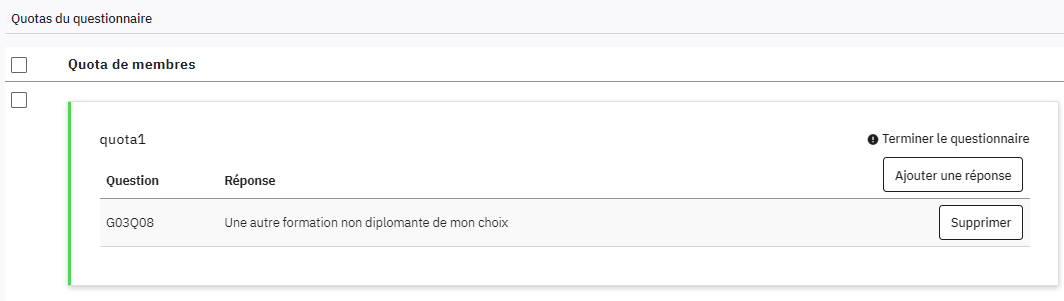 Utiliser les quotascomment je peux faire pour terminer le questionnaire après le choix d'un des 4 choix du 3ème groupe .?