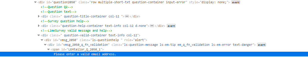 avec $ia[2] étant le code de ma question, mais j'aimerai y mettre le code de ma sous question, voir si possible le text de ma sous question.$vpopup = gT("One or more questions have not been answered in a valid manner : " . $ia[2] . " You cannot proceed until these answers are valid.");