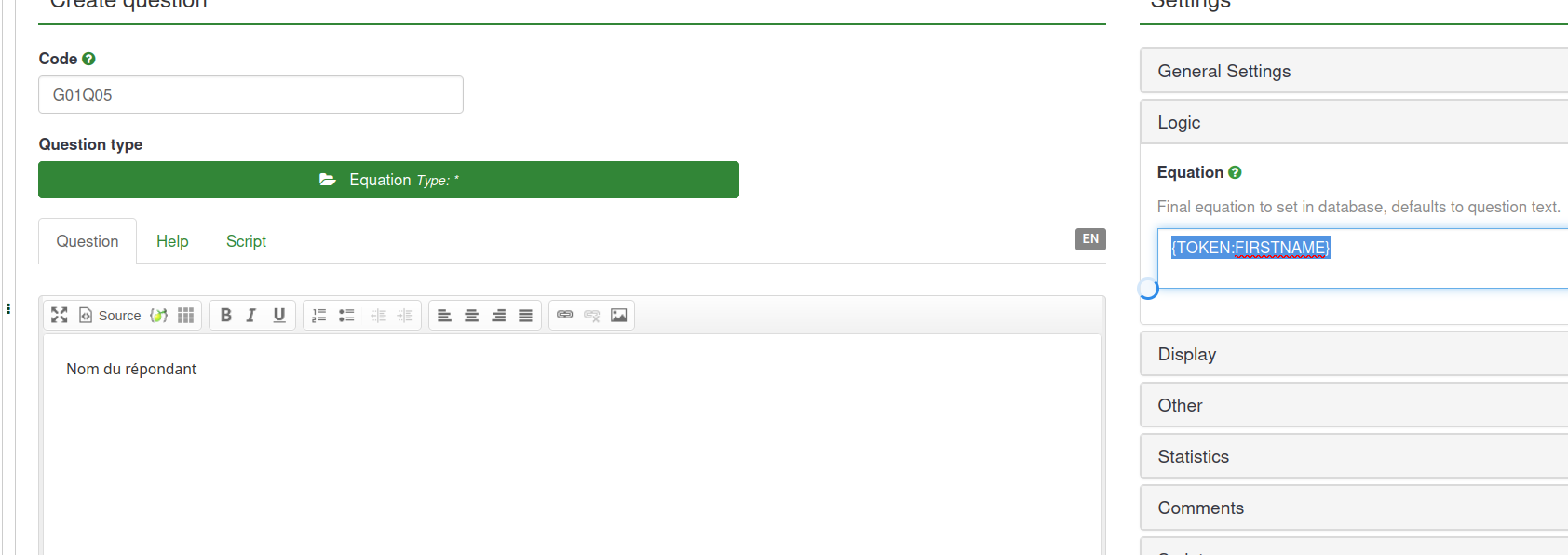 Mais comment afficher "Nom du répondant" en intitulé de colonne vu que le texte de ma question est {TOKEN:LASTNAME} ?