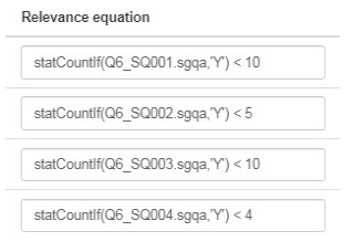 (UELIBREfiliere.NAOK=="A2" or UELIBREfiliere.NAOK=="A3" or UELIBREfiliere.NAOK=="A4" or UELIBREfiliere.NAOK=="A5" or UELIBREfiliere.NAOK=="A7") AND (statCountIf(Q0_SQ1.sgqa,"Y") < 12)