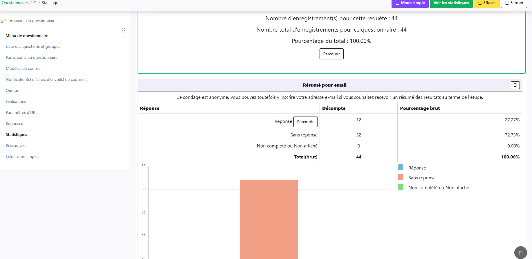 L'exportation des résultats sous forme html est très satisfaisante visuellement, mais je n'ai pas trouvé comment les enregistrer sous forme d'un fichier téléchargeable. Je dois me contenter de les lire en me connectant à Limesurvey. Je sais bien qu'il y a d'autres possibilités d'exportation des résultats (pdf par exemple), mais elles ne présentent pas la souplesse de la sortie html. Y a-t-il une façon de récupérer ces résultats sous la forme d'un fichier html ?